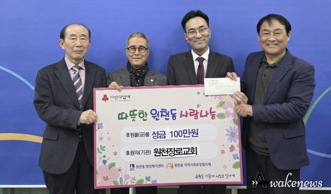 어웨이크뉴스 오경하 기자 | 수원시 영통구 원천동은 지난 10일 원천장로교회가 지역 내 저소득 주민들을 돕기 위해 성금 100만 원을 행정복지센터에 기탁했다고 밝혔다.