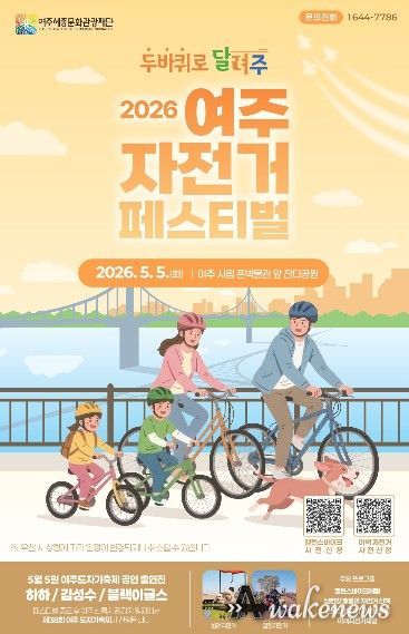 어웨이크뉴스 오경하 기자 | 여주세종문화관광재단은 어린이날을 맞아 오는 5월 5일 오전 10시부터 오후 2시까지 금은모래강변공원 폰박물관 앞에서 '2026 여주 자전거 페스티벌, 두 바퀴로 달~여주'를 개최한다고 밝혔다.