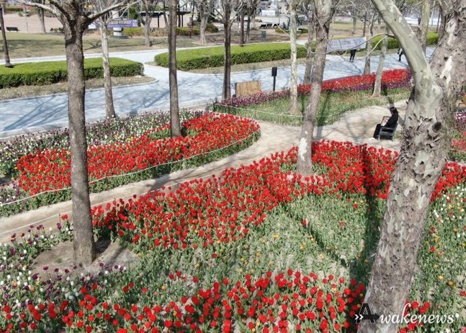 지난해 가을에 식재한 9만본의 튤립, 수선화를 포함해 총 13만6,000본의 형형색색 봄꽃이 만개했다.