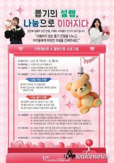 어웨이크뉴스 오경하 기자 | 의정부시자원봉사센터는 4월 13일부터 4월 30일까지 자원재순환&활동인증 프로그램인“뽑기의 설렘, 나눔으로 이어지다”참여자를 모집한다.