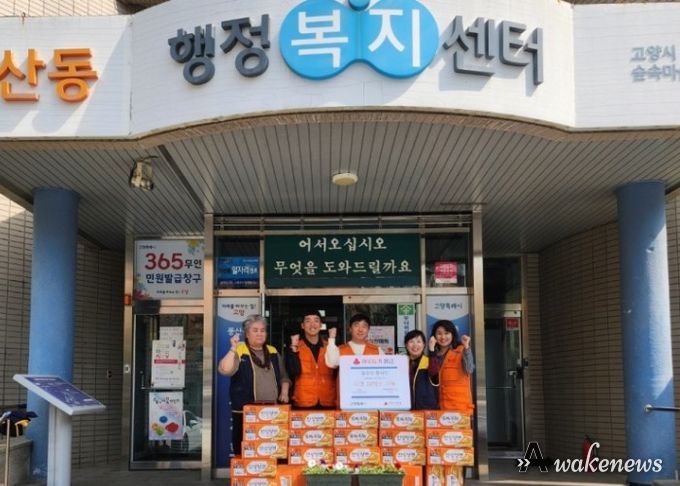 어웨이크뉴스 오경하 기자 | 고양특례시 풍산동은 지난 13일 더샵일산엘로이 입주민들로 구성된 ‘엘로이봉사단’으로부터 지역사회 나눔 실천 일환으로 라면 28박스를 기탁받았다.