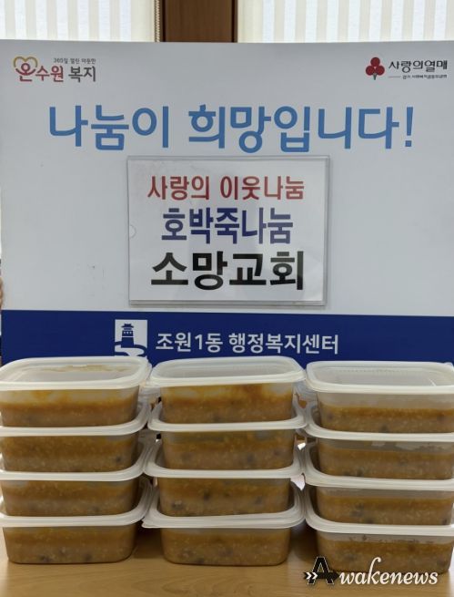 어웨이크뉴스 오경하 기자 | 수원시 장안구 조원1동 지역사회보장협의체와 2025년 7월 업무협약을 맺은 소망교회가 지난 14일, 조원1동 관내 취약계층 20명을 위해 호박죽을 지원했다.