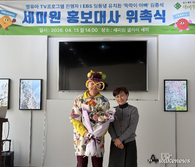 어웨이크뉴스 오경하 기자 | 재단법인 세미원은 지난 13일 세미원 갤러리 세미에서 ‘뚝딱이 아빠’로 알려진 영유아 TV 프로그램 진행자 김종석을 홍보대사로 위촉했다.