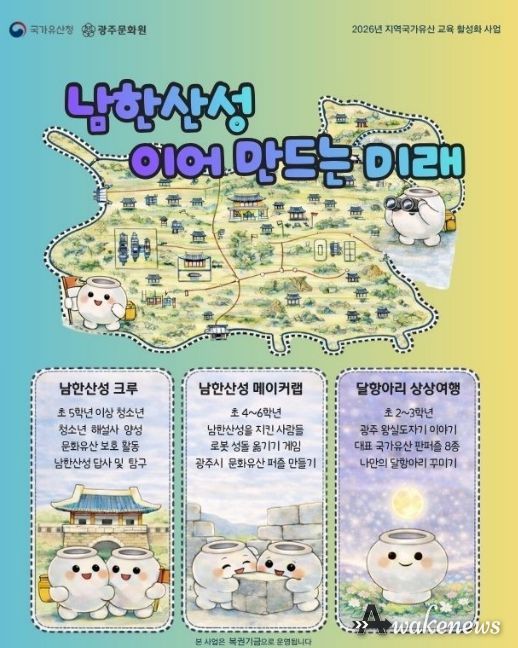 어웨이크뉴스 오경하 기자 | 광주시는 국가유산청 공모사업인 ‘2026년 지역국가유산 교육 활성화 사업’에 선정되어 광주문화원이 시행하는 ‘남한산성, 이어 만드는 미래’를 4월말부터 본격 운영할 예정이다.