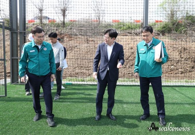 어웨이크뉴스 오경하 기자 | 김포 최초의 한강변 조망 축구장인 고촌 신곡축구장이 오는 6월 개장을 목표로 하고 있는 가운데, 김포시가 14일 조성현장을 방문해 사업 추진현황을 점검했다. 시는 진입로 공사 등 추진상황을 점검하고 안전하고 조속한 개장에 박차를 가할 예정이다.