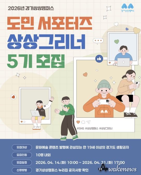 어웨이크뉴스 오경하 기자 | 경기문화재단 경기상상캠퍼스는 오는 4월 21일까지 도민 서포터즈 ‘상상그리너’ 5기를 모집한다.