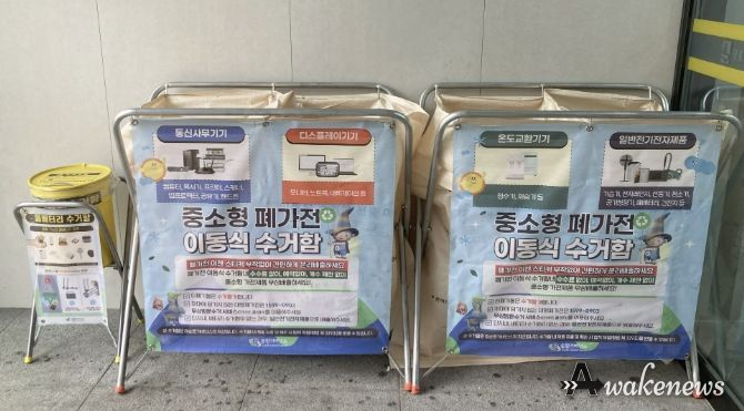 어웨이크뉴스 오경하 기자 | 수원시 영통구는 주민들의 소형폐가전 배출 편의를 높이고 자원순환을 활성화하기 위해 주민센터 내 소형폐가전 수거함을 설치하고, e-순환거버넌스와 연계한 수거사업을 추진한다고 밝혔다.