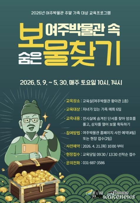 어웨이크뉴스 오경하 기자 | 여주시 여주박물관은 가정의 달 5월을 맞아 가족이 함께 지역 문화유산의 가치를 즐겁게 배우고 체험할 수 있는 ‘여주박물관 속 숨은 보물찾기’를 운영한다.