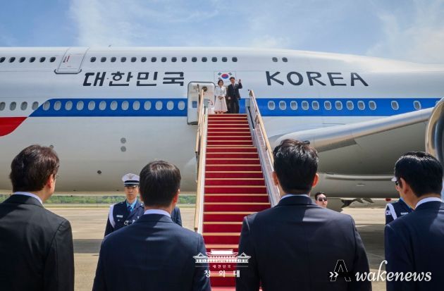 어웨이크뉴스 오경하 기자 | 이재명 대통령과 김혜경 여사는 5박 6일 일정의 인도 및 베트남 국빈 방문을 위해 19일 경기 성남 서울공항에서 대통령 전용기(공군 1호기)를 이용해 출국했다.