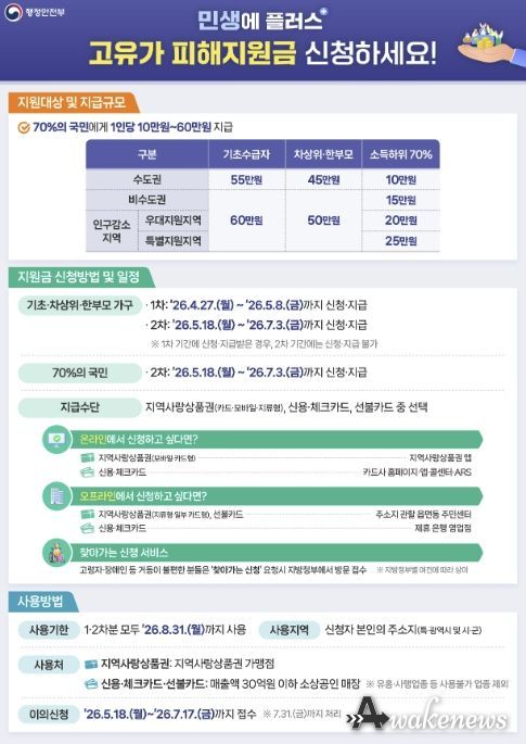 어웨이크뉴스 오경하 기자 | 군포시는 오는 4월 27일부터 고유가 피해지원금 1차 신청·지급을 본격 추진한다.
