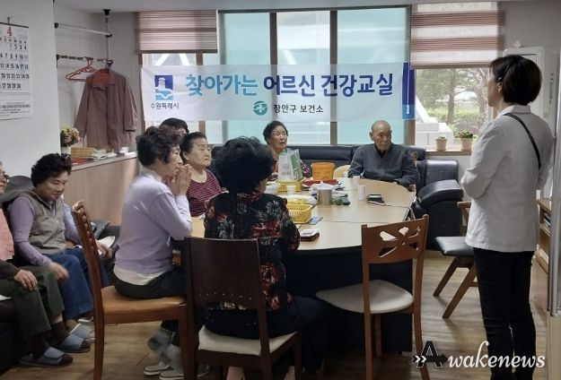 어웨이크뉴스 오경하 기자 | 수원시 장안구 송죽동은 지난 17일, 관내 로얄팰리스 경로당에서 '찾아가는 어르신 건강교실' 프로그램을 운영했다.