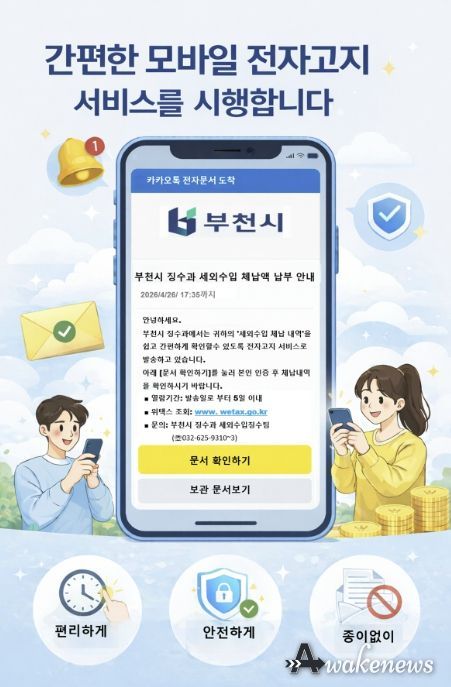 부천시 징수과장은 “모바일 전자고지 도입으로 고지서 전달의 정확성과 납부 편의가 높아질 것으로 본다”며 “앞으로도 시민 중심의 납세 서비스를 지속 확대하겠다”고 말했다.