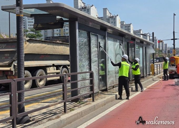 어웨이크뉴스 오경하 기자 | 고양특례시 덕양구는 지난 14~17일 4일간 간선급행버스체계(BRT) 승강장에 대한 고압 물 세척으로 대중교통 환경을 정비했다.