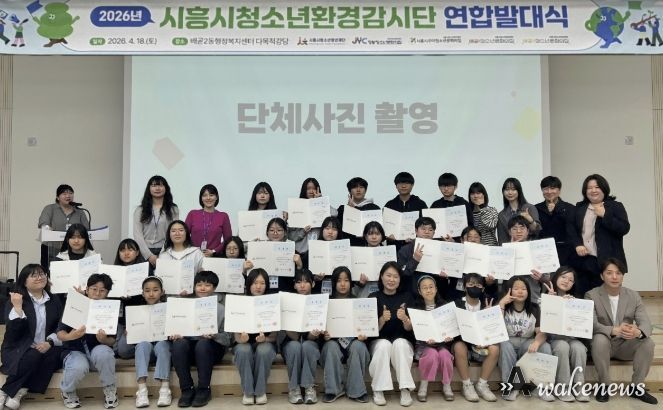 어웨이크뉴스 오경하 기자 | (재)시흥시청소년청년재단은 지난 4월 18일, 배곧2동 행정복지센터에서 청소년사업3본부 산하 4개 청소년문화의집(정왕ㆍ꾸미ㆍ배곧1ㆍ배곧2)이 연합해 운영하는 ‘2026 제3기 시흥시청소년환경감시단 연합발대식’을 개최했다.