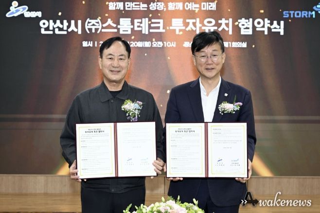 어웨이크뉴스 오경하 기자 | 안산시는 지난 20일 코스닥 상장기업 ㈜스톰테크와 제2공장 신축 및 투자 확대를 위한 협약을 체결했다고 21일 밝혔다.
