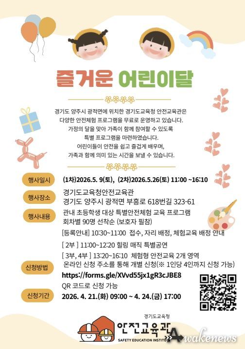 어웨이크뉴스 오경하 기자 | 경기도교육청안전교육관이 가정의 달을 맞아 가족이 함께 참여해 안전의 중요성을 쉽고 즐겁게 배울 수 있도록 ‘가정의 달 안전교육 특별 프로그램’을 운영한다.