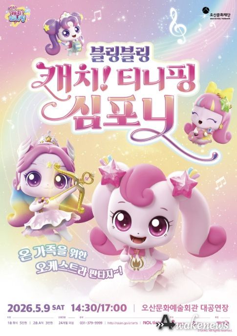 어웨이크뉴스 오경하 기자 | 오산문화재단은 어린이날을 맞아 온 가족이 함께 즐길 수 있는 오케스트라 공연 ‘블링블링 캐치! 티니핑 심포니’를 선보인다고 밝혔다. 이번 공연은 인기 애니메이션 ‘캐치! 티니핑’ 시리즈의 OST를 오케스트라 라이브로 감상할 수 있는 무대로, 어린이뿐 아니라 가족 단위 관람객들에게 특별한 문화 경험을 제공할 예정이다.
