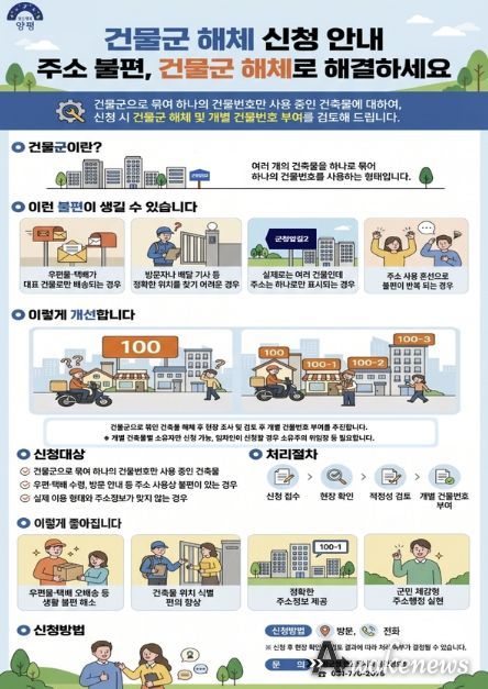 이에 군은 2026년 4월부터 건물군으로 묶여 하나의 건물번호만 사용 중인 건축물 중 해체를 희망하는 지역을 대상으로 신청·발굴을 통해 지속적인 정비 체계를 구축할 방침이다.