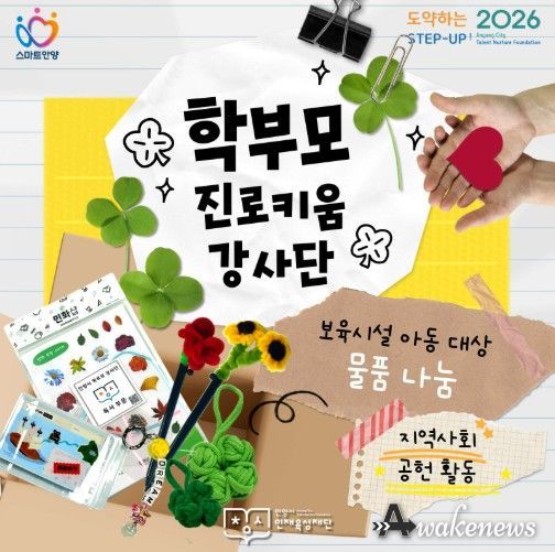 어웨이크뉴스 오경하 기자 | 안양시 인재육성재단의 ‘학부모 진로키움 강사단’이 지역사회 공헌 활동의 일환으로 관내 ‘좋은집 보육원’에 아동들을 위한 체험형 교구를 기부하며 따뜻한 나눔을 실천했다.