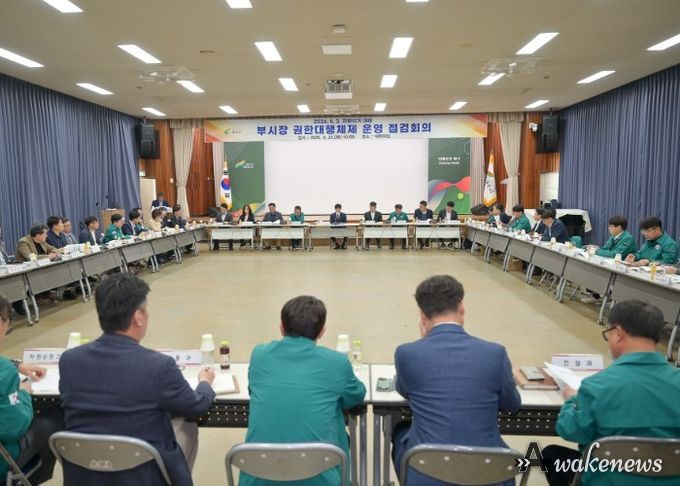 어웨이크뉴스 오경하 기자 | 여주시는 지난 4월 21일 시청 4층 대회의실에서 김광덕 부시장 주재로 ‘부시장 권한대행체제 운영 점검회의’를 개최했다. 이번 회의는 20일 여주시장이 제9회 전국동시지방선거 시장예비후보로 등록함에 따라 부시장 권한대행 체제 전환으로 시정의 안정과 업무의 연속성을 유지하고 행정 공백을 최소화하고자 마련했다.