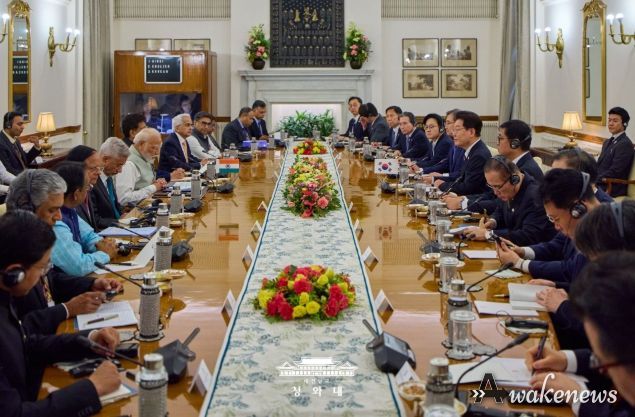 어웨이크뉴스 오경하 기자 | 청와대는 이재명 대통령의 인도 국빈 방문 성과와 관련 "우리 글로벌 사우스 외교의 본격적인 가동을 알리는 계기이자 14억 인구를 바탕으로 고속 성장 중인 인도와 새로운 협력 모멘텀을 창출하고 미래지향적이고 전략적인 분야로 양국 간 협력의 지평을 확대하는 계기가 됐다"고 평가했다.