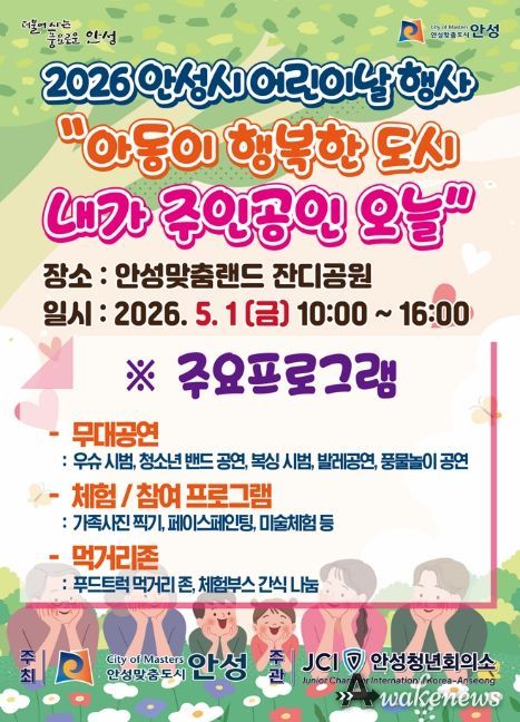 어웨이크뉴스 오경하 기자 | 안성시가 주최하고 안성청년회의소가 주관하는 ‘제104회 어린이날 기념행사’가 오는 5월 1일 노동절, 안성맞춤랜드에서 개최된다.