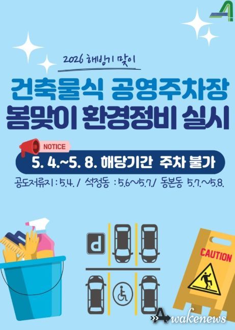 세부 정비 일정은 ▲공도저류지 공영주차장(5월 4일) ▲석정동 공영주차장(5월 6일~7일) ▲동본동 공영주차장(5월 7일~8일) 순으로 진행된다. 공단은 청소 및 시설 보수 시간 중 발생할 수 있는 안전사고를 예방하기 위해 해당 기간 주차장 이용을 일시적으로 제한한다.