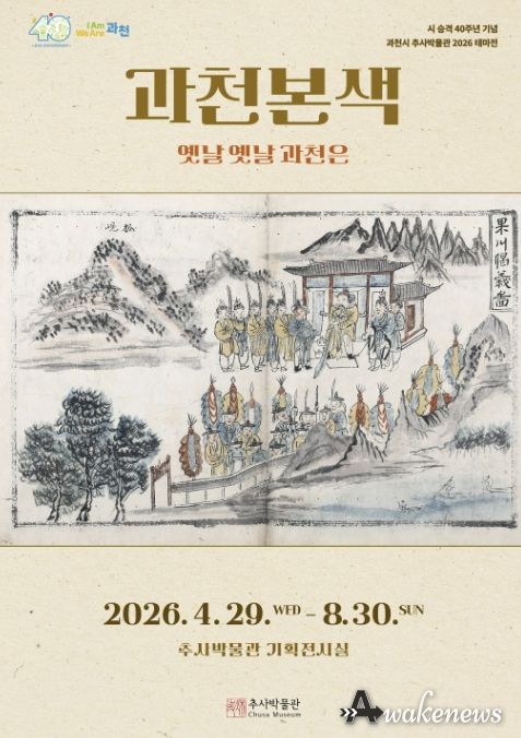 어웨이크뉴스 오경하 기자 | 과천시 추사박물관은 시 승격 40주년을 기념하여 ‘2026 테마전 '과천본색–옛날 옛날 과천은'’을 개최한다고 밝혔다. 이번 전시는 4월 29일 오후 3시 개막식을 시작으로 8월 30일까지 추사박물관 기획전시실에서 진행된다.