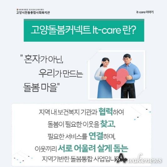어웨이크뉴스 오경하 기자 | 고양시흰돌종합사회복지관은 일상 속 돌봄을 실현하기 위해 보건-복지가 연계된 통합돌봄 인프라 구축 프로젝트 ‘고양돌봄커넥트 It-care’ 사업을 추진한다고 22일 밝혔다.