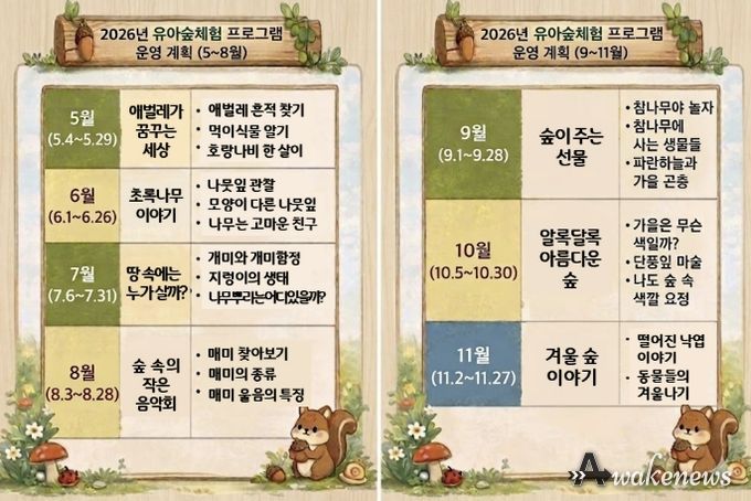 한편, 유아숲체험원 프로그램은 4월부터 11월까지 운영되며 성주산 둥지(소사), 원미산 산울림(원미), 은데미(오정) 등 3개 유아숲체험원에서 진행된다. 회당 20명 이내 소규모로 운영해 안전성과 체험 집중도를 높이며 운영시간은 오전 9시 30분부터 11시 30분까지 2시간, 참가비는 무료다.