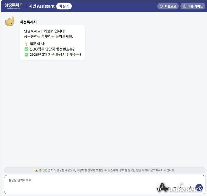 어웨이크뉴스 오경하 기자 | 화성특례시는 시민 체감형 행정서비스 강화를 위해 23일부터 ChatGPT 기반 대화형 AI 검색 서비스 ‘화성in’을 정식 운영한다.