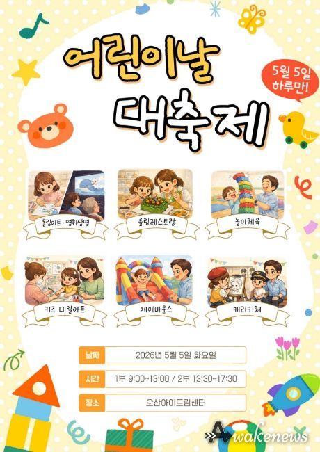 어웨이크뉴스 오경하 기자 | 오산시가 운영하는 오산아이드림센터가 어린이날을 맞아 온 가족이 함께 즐길 수 있는 특별 체험행사를 마련한다.