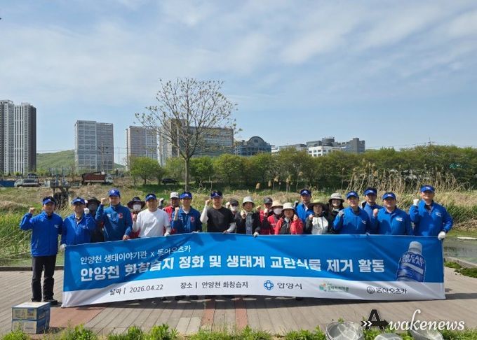 어웨이크뉴스 오경하 기자 | 안양시는 ‘지구의 날’인 22일 동아오츠카와 함께 석수동 일대 안양천의 화창습지에서 환경 정화 활동을 펼쳤다고 23일 밝혔다.