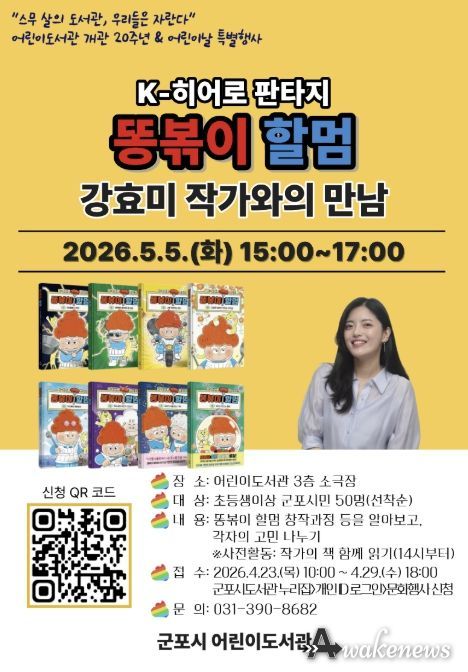어웨이크뉴스 오경하 기자 | 군포시어린이도서관은 오는 5월 4일 개관 20주년을 맞아 지역주민과 함께 소통하고 성장해 온 시간을 기념하기 위해 다채로운 행사를 개최한다고 밝혔다.