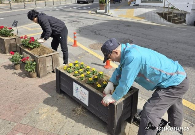 이번 활동은 통장협의회를 중심으로 주민들이 직접 참여하고 주도한 환경정비로, 관내에 설치된 크고 작은 화분 약 40여 개에 다양한 봄꽃을 식재하고 주변 환경을 함께 정비하며 마을 곳곳에 화사한 봄기운을 더했다.