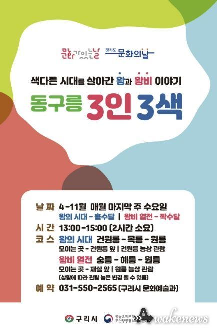 구리시 관계자는 “문화가 있는 날을 맞아 세계유산 동구릉에서 조선의 다양한 시대와 왕·왕비의 이야기를 만나는 뜻깊은 시간이 되길 바란다”라며 “앞으로도 시민들이 역사와 문화를 가까이에서 체험할 수 있는 프로그램을 지속적으로 확대해 나가겠다”라고 밝혔다.