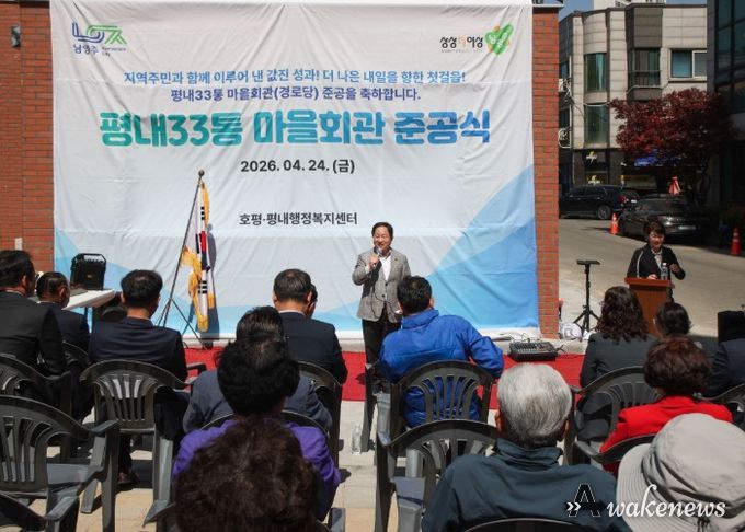 어웨이크뉴스 오경하 기자 | 남양주시는 24일 평내동 588-19번지 일원에서 평내33통 마을회관 재건축사업 준공식을 개최했다고 밝혔다.