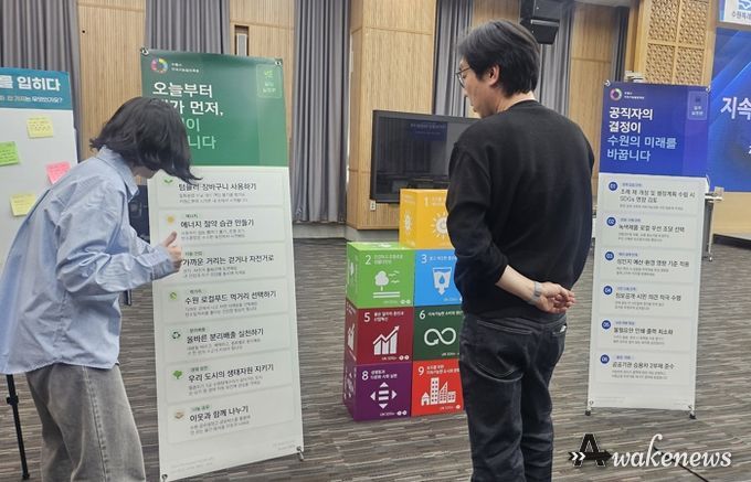 어웨이크뉴스 오경하 기자 | 수원특례시는 24일 시청 중회의실에서 지속가능발전목표(SDGs) 추진사업 실무자를 대상으로 ‘내 업무에 지속가능발전목표 입히기’ 캠페인을 진행했다.