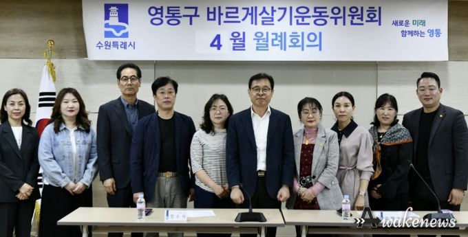 어웨이크뉴스 오경하 기자 | 수원시 영통구는 지난 24일 바르게살기운동 영통구지도위원회가 영통구청 상황실에서 각 동 위원장 및 총무 등 14명이 참석한 가운데 4월 월례회의를 개최했다고 밝혔다.
