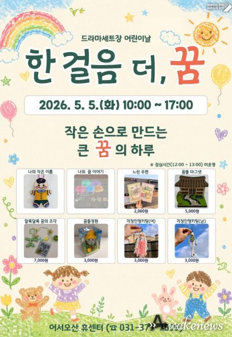 이번 프로그램은 어린이날을 기념해 아이들이 다양한 체험활동을 통해 자신의 생각과 꿈을 자유롭게 표현할 수 있도록 마련됐다. 드라마세트장과 어서오산 휴센터(休) 공간을 활용해 창의적이고 감성적인 체험 콘텐츠를 선보일 예정이다.