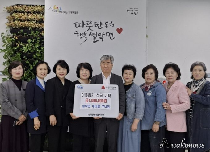 어웨이크뉴스 오경하 기자 | 가평군 설악면 새마을부녀회 회원들은 최근 설악면 행정복지센터를 찾아 관내 취약계층을 위한 이웃돕기 성금 100만원을 기탁했다.