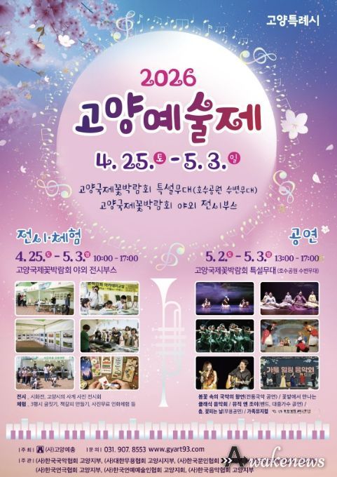 어웨이크뉴스 오경하 기자 | 고양특례시의 봄을 수놓는 지역 예술 축제 ‘2026 고양예술제’가 오는 5월 3일까지 고양국제꽃박람회 특설무대와 야외 전시부스에서 개최된다.
