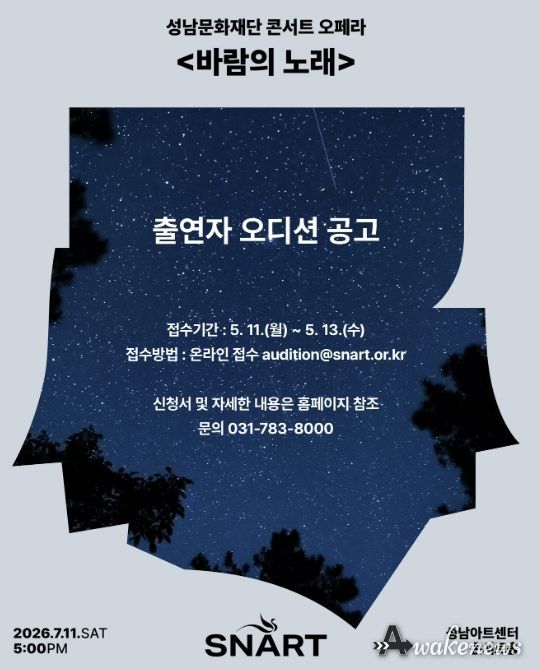어웨이크뉴스 오경하 기자 | 성남문화재단은 콘서트 오페라 ‘바람의 노래’ 무대를 빛낼 주역 성악가를 선발하는 오디션을 개최한다.