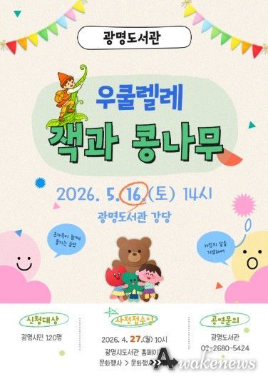 어웨이크뉴스 오경하 기자 | 광명시 광명도서관이 오는 5월 16일 오후 2시 온 가족이 함께 즐길 수 있는 창작뮤지컬 '우쿨렐레, 잭과 콩나무'를 연다.