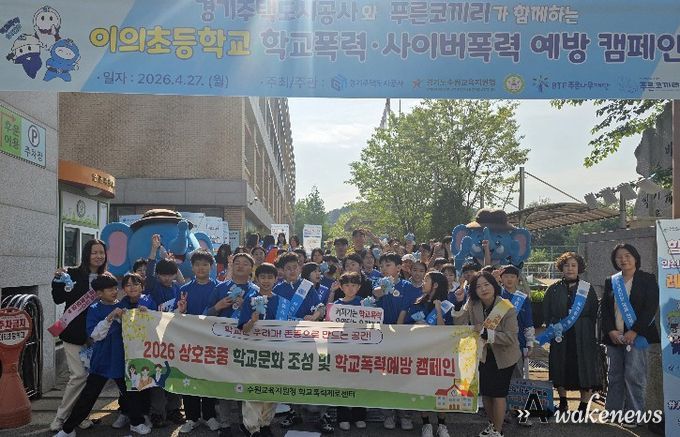 이번 캠페인은 최근 급증하는 청소년 사이버폭력 사안에 대응하고 건강한 디지털 시민 의식을 함양하기 위해 마련됐으며, 수원교육지원청을 비롯해 경기주택도시공사(GH), 푸른나무재단(푸른코끼리), 이의초 학부모회 관계자 등이 참여했다.