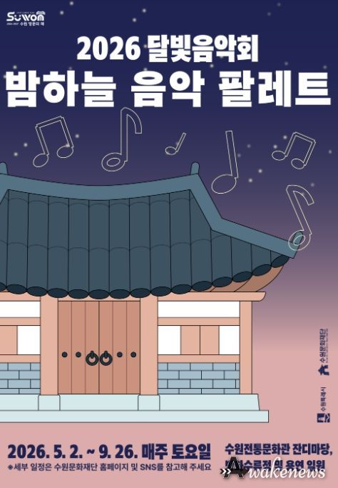 어웨이크뉴스 오경하 기자 | 수원문화재단은 오는 5월부터 9월까지 국가유산과 자연, 음악이 어우러진 야간 공연 프로그램 '2026 달빛음악회 '밤하늘 음악 팔레트'’를 운영한다.