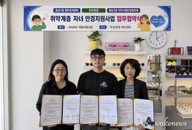 어웨이크뉴스 오경하 기자 | 광주시 광남2동 행정복지센터와 지역사회보장협의체는 지역 안경업체 두 손 안경 위드렌즈와 함께 취약계층 아동·청소년의 시력 보호와 학습환경 개선을 위한 안경 지원사업 업무협약을 체결했다고 28일 밝혔다.
