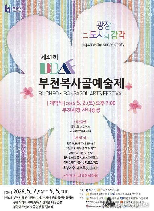 어웨이크뉴스 오경하 기자 | 부천시는 ‘제41회 부천복사골예술제’를 5월 2일부터 5일까지 4일간 부천시청 잔디광장과 중앙공원, 부천아트센터 일원에서 연다.