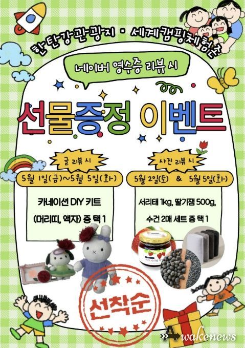 이번 행사의 대표 프로그램은 네이버 영수증 리뷰 이벤트로, 입실 고객이 네이버에 글 리뷰를 작성하면 가정의 달을 기념하는 카네이션 DIY 키트를 선착순으로 제공한다. 사진 또는 동영상이 포함된 리뷰를 작성한 고객에게는 한탄강관광지 지역상생 홍보관 입점 농산품을 선착순으로 제공한다.