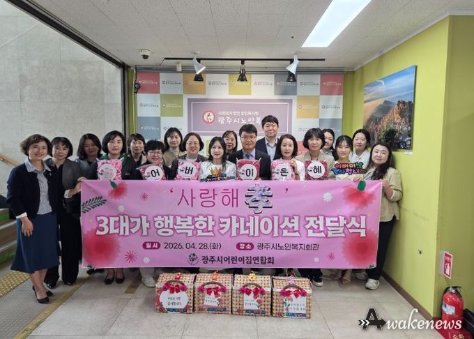 어웨이크뉴스 오경하 기자 | 광주시 어린이집연합회는 28일 광주시노인복지관에 카네이션 1천200여 송이를 전달했다.